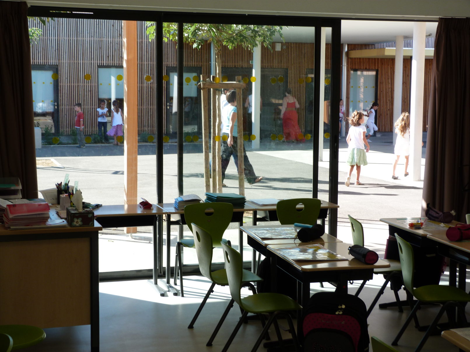 2010 : 2 écoles en 2 bâtiments distincts séparées par une cour et un hall + restaurant scolaire et cuisine cenrale.